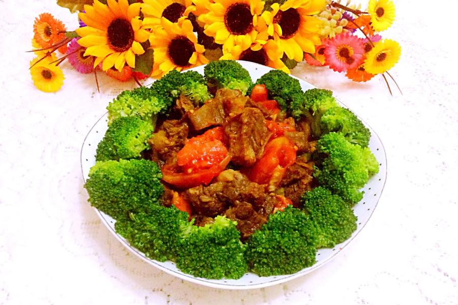 牛肉、番茄、米椒、葱、姜、花椒、盐、酱油、桂皮、鸡精、大料、香叶