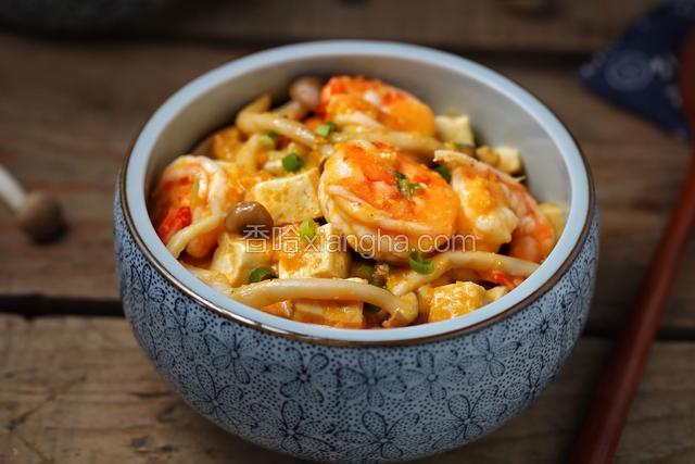 1.将豆腐切成小方块,蟹味菇剪去根部洗净沥水备用。