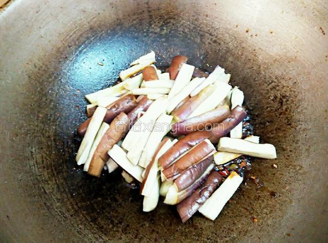 3.恩恩,茄子微波出来稍微凉一下也切断备用