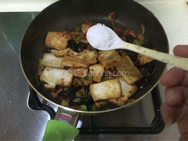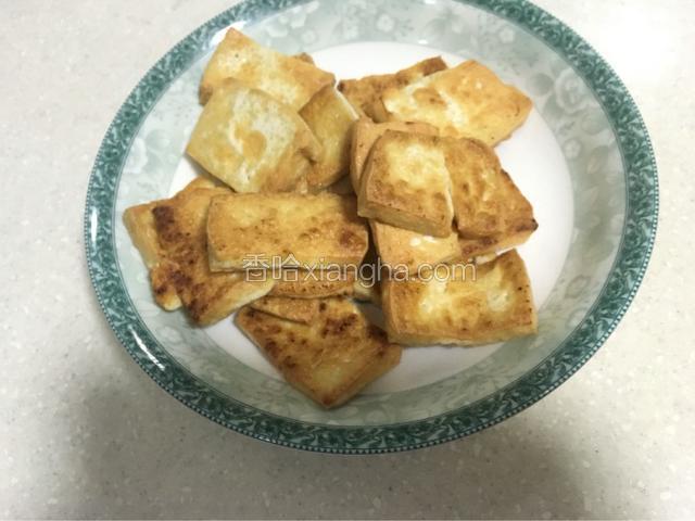 1.豆腐切成薄片,黑木耳切丁,红、绿辣椒切丁,大葱切薄片,郫县豆瓣酱备好,