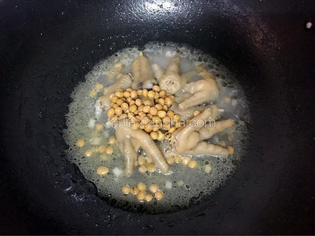 4.鸡爪捞出洗净沥干水分备用,黄豆洗净备用,姜蒜葱备好