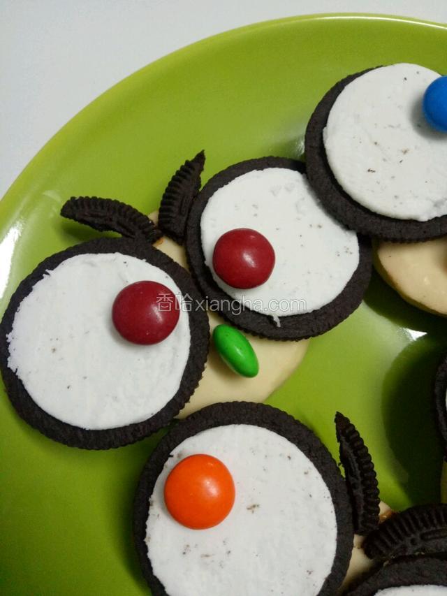 巧克力豆做眼珠和嘴巴