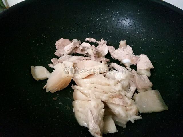 5.锅里不用油,直接将肉倒入锅内熬至出油,肉肉就不腻人了