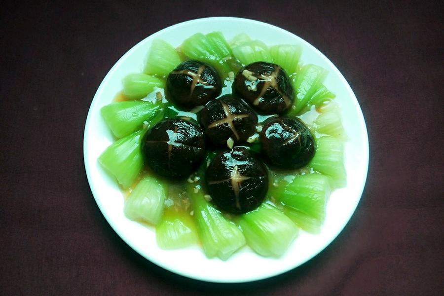 香菇、青菜、姜、盐、糖、生抽、淀粉