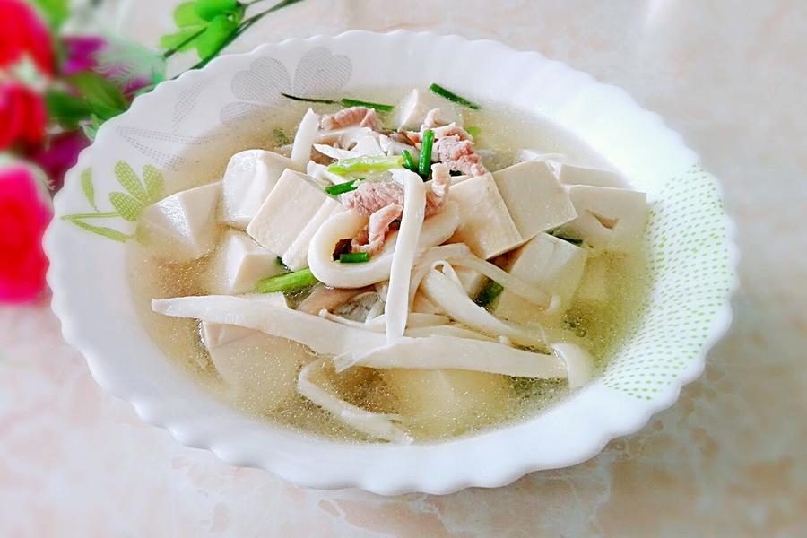 金针菇、瘦肉、白豆腐、袖珍菇、葱、海鲜菇