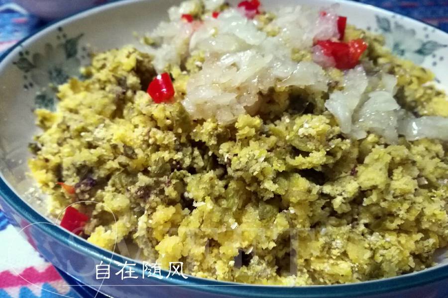 玉米面、榆钱儿、大蒜