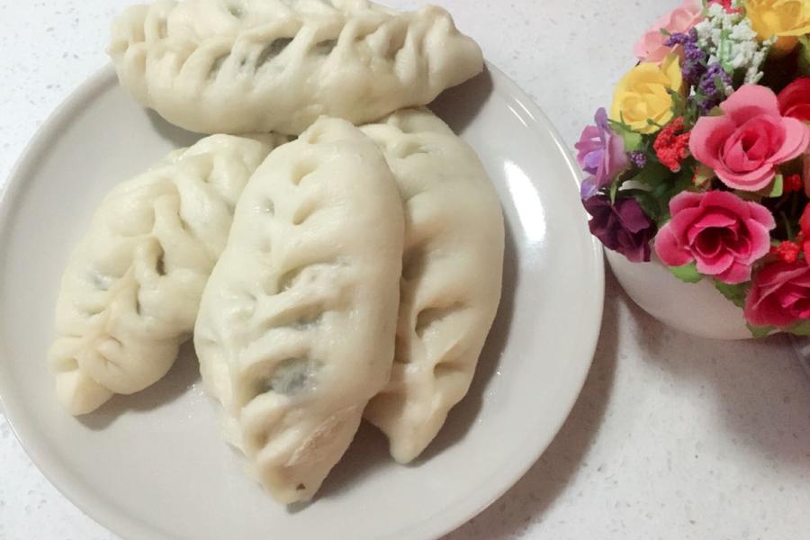 温水、葱花、姜、盐、酵母粉、香油、植物油、面皮:白面粉、馅:五香豆腐皮