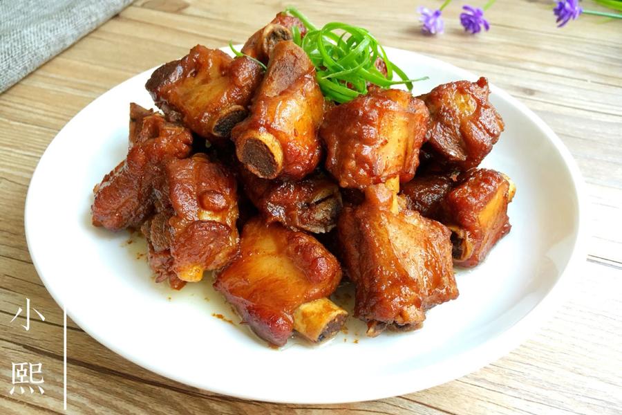 排骨、葱、冰糖、蒜、料酒、盐、姜片、六月香豆瓣酱、李锦记黄豆酱、八角桂皮类香料