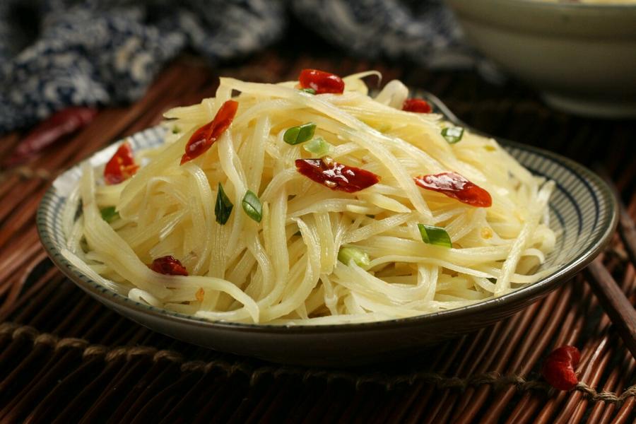 土豆、干红辣椒、葱、盐、油、鸡精、白醋