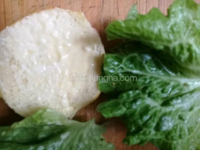 5.洗西红柿和几片生菜。番茄从中间切二片厚片。