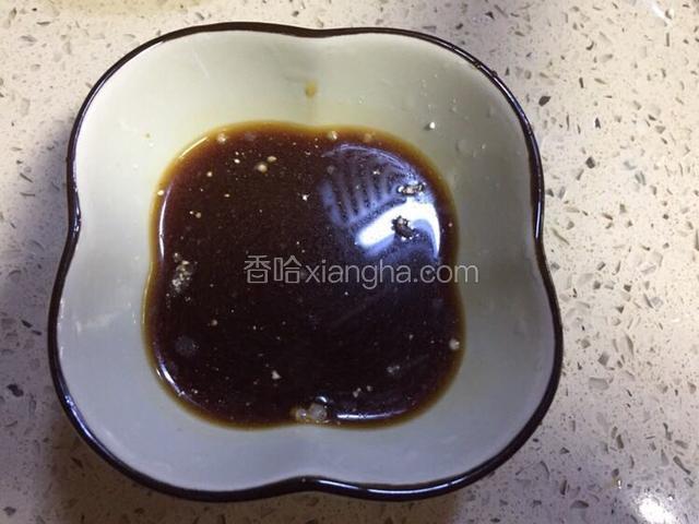 6.取碗加入一勺生抽,一勺淀粉,30ml清水兑汁备用