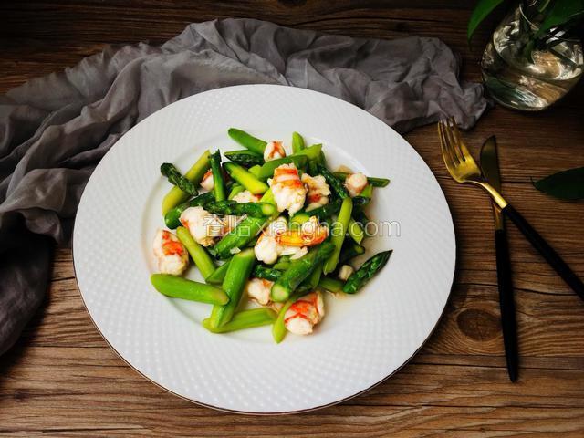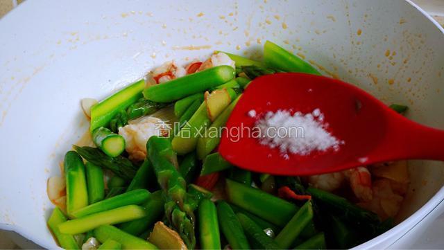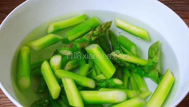 1.芦笋、虾仁切段,姜切片,蒜切丁