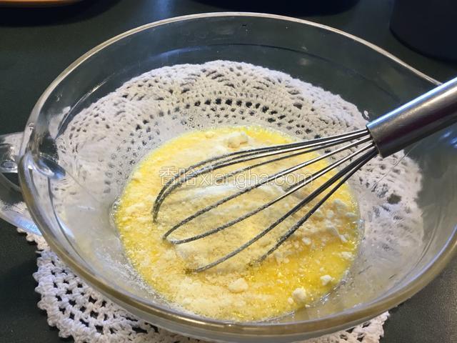 6.搅匀,并加入芝士粉和少许盐拌匀;