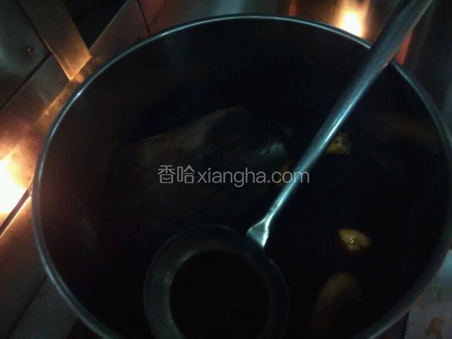 2.烧沸卤水,把光鸡放入卤水中慢火浸约20分钟至刚熟。