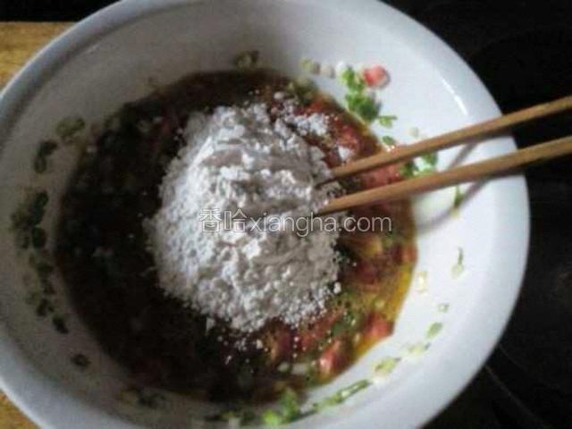 3.加入少许面粉 盐 鸡精 胡椒粉调匀