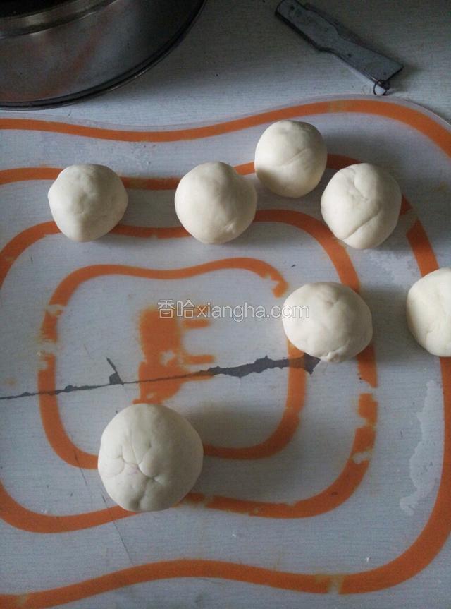 2.将牛奶稍微加热(嫌奶味太腻的可以用水),将酵母融化加进面粉里,将面粉揉成三光面团(面光手光盆光)放置温暖处发酵两小时左右,然后取出揉面团将空气排出,再把它捏成大小差不多的小面团