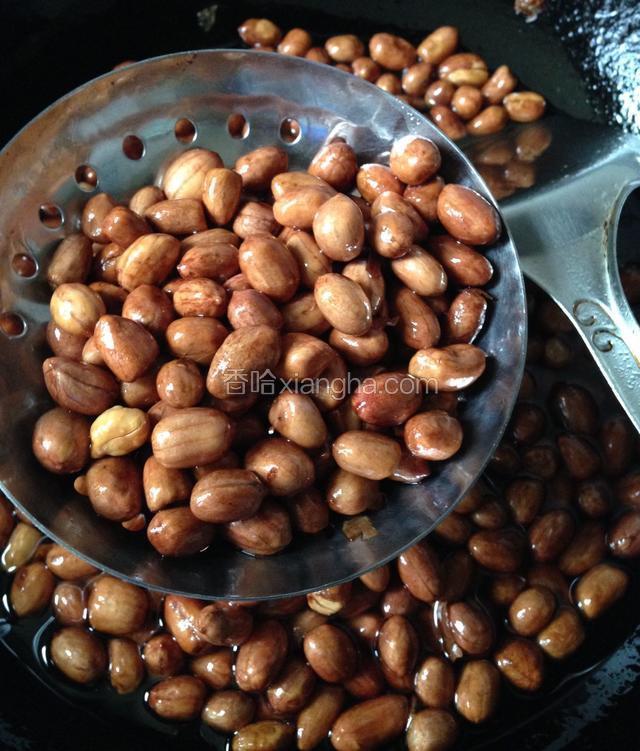 6.如图所示:等锅里的油温渐渐冷了,用漏勺盛出花生米沥干油。