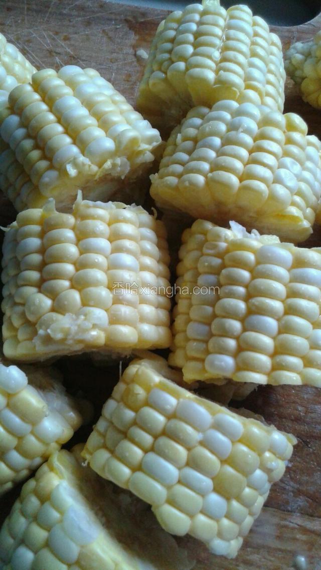 5.把姜片 鸡腿肉 玉米 香菇 水起放进煲锅里,开火等煮开后关小火煲一个半小时即可。