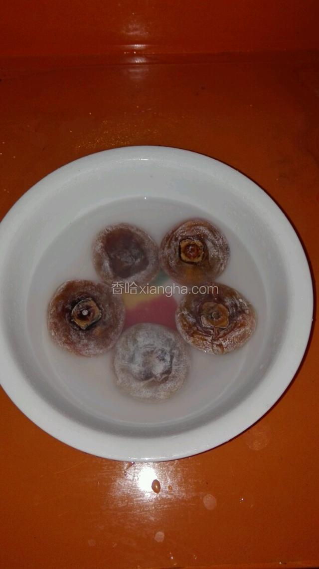 4.把切好的柿饼放入汤碗加一点点水,并放入淀粉拌匀