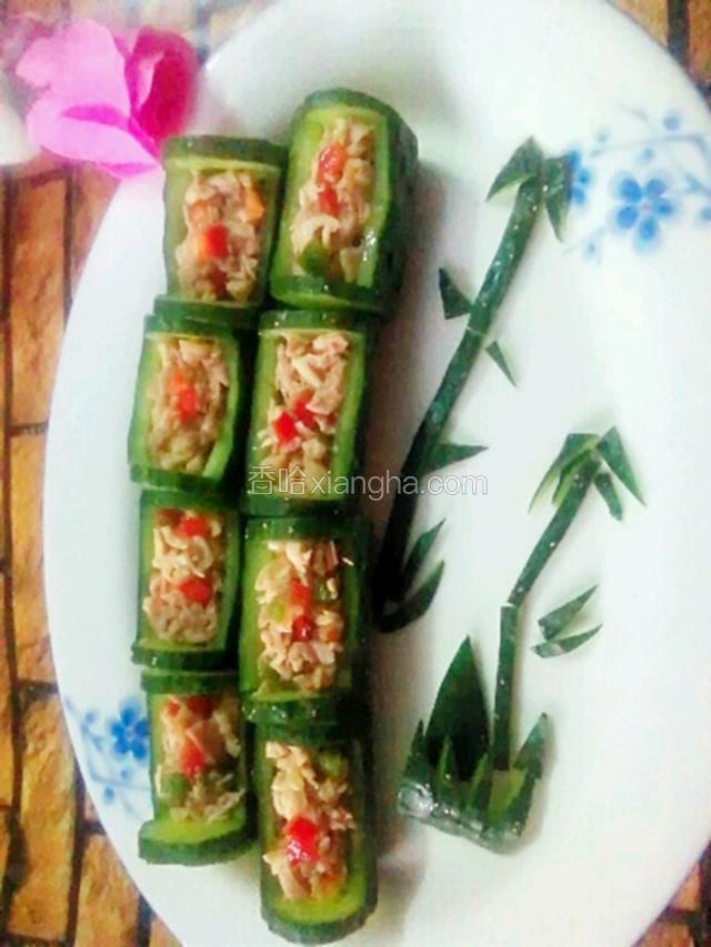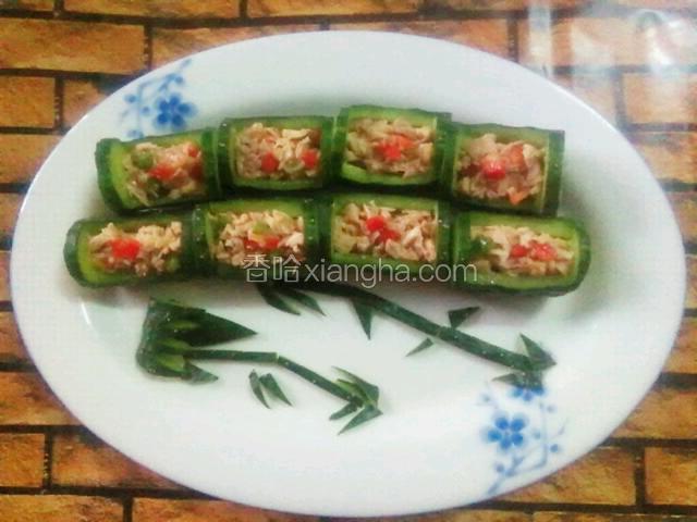1.鸡腿放入八角,一点盐用锅压20分钟,冷凉切成丁