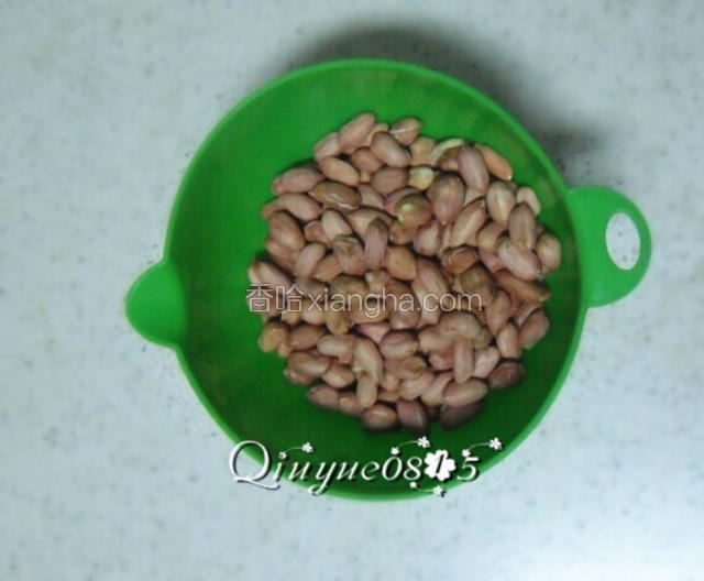 2.用凉水泡,直到花生的皮能顺利的剥下来。