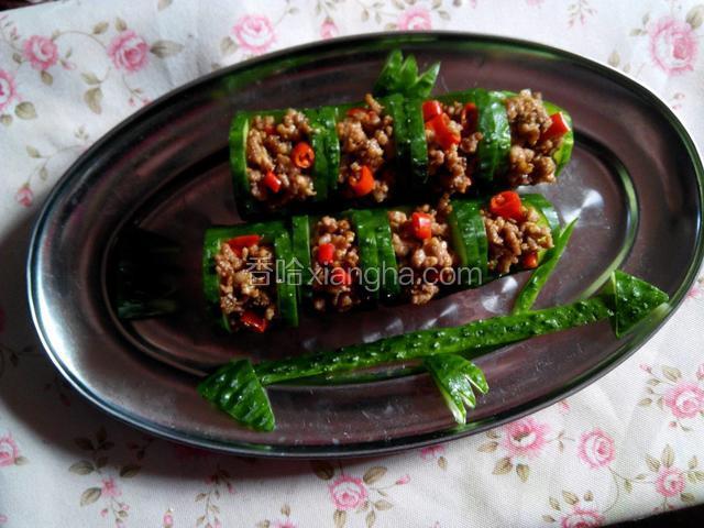 1.准备食材:黄瓜、红辣椒、猪肉末。