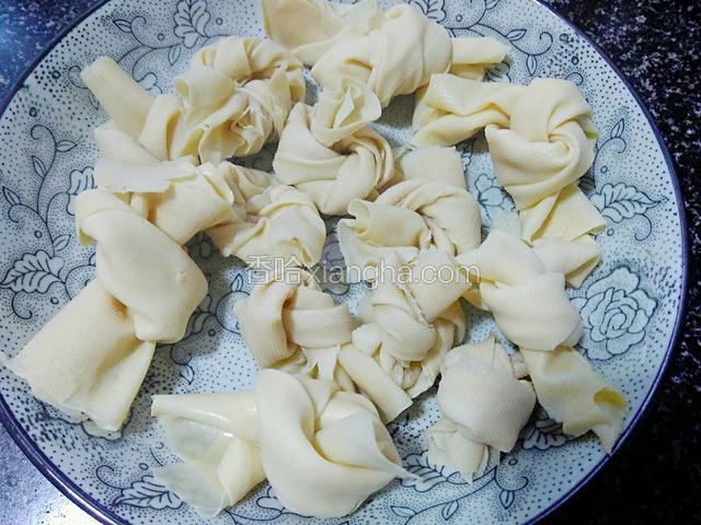 3.将百叶卷起,打成一个个结。