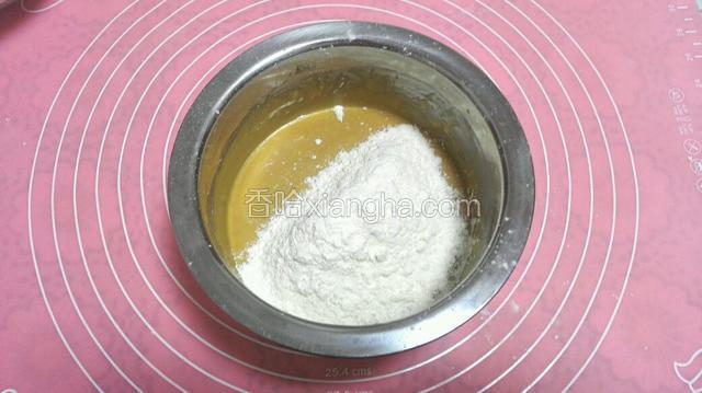 4.将搅拌好的花生酱加入三分之一的低筋粉