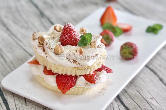6.用草莓、榛子装饰一下,撒点糖粉和可可粉。美美哒~把它吃掉~