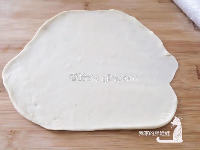 5.此时倒少许食用油在手里,拿一个剂子揉揉,然后用擀面棒擀开