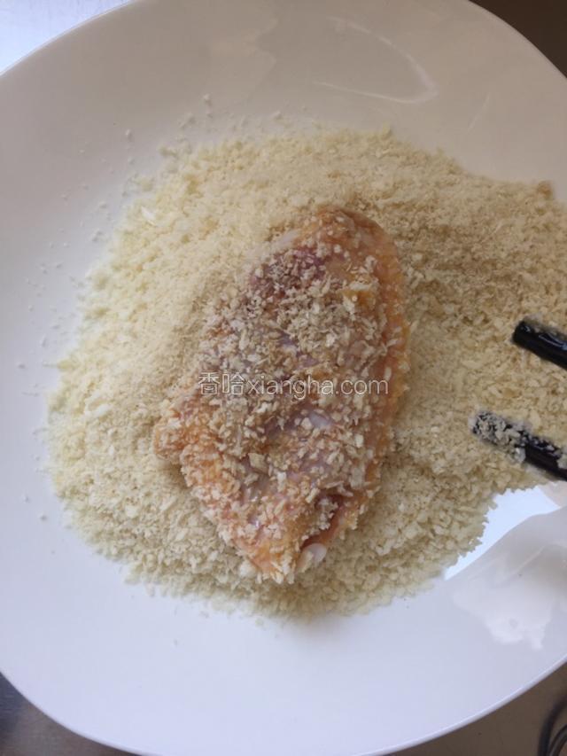 4.将鸡翅中放进面包糠;