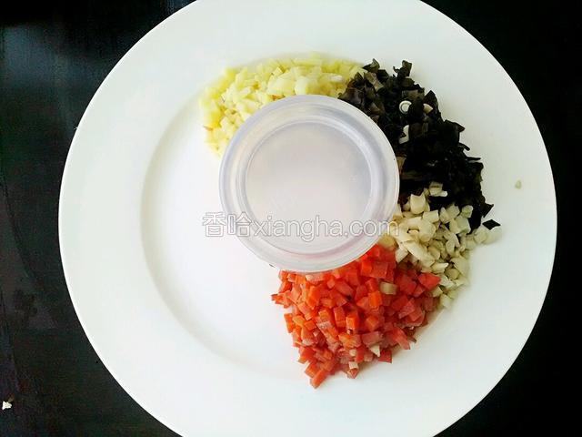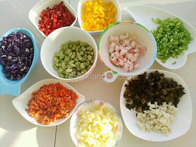 4.胡罗卜切丁煮熟,毛豆也煮熟