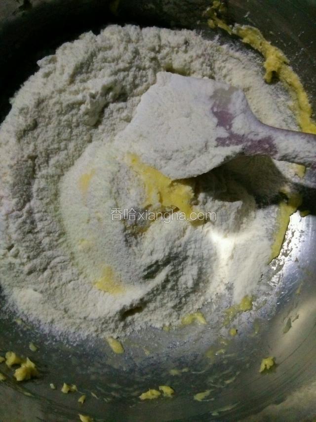 1.黄油提前软化,加入糖粉用刮刀拌匀。