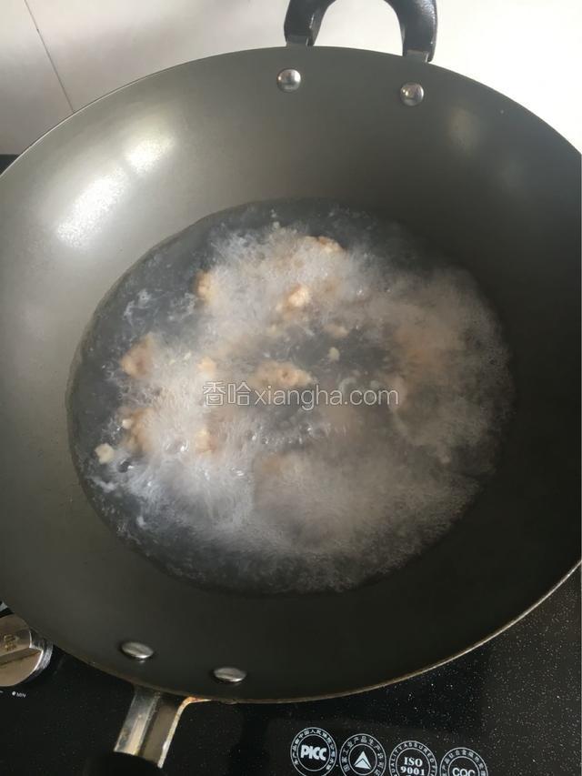 2.把肉放在一个容器里加入木薯粉 玉米淀粉 水 料酒 盐和鸡精