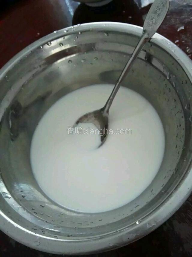 1.加两勺白砂糖,100ml纯牛奶,搅拌均匀! 牛奶加热,不需要沸腾,放凉