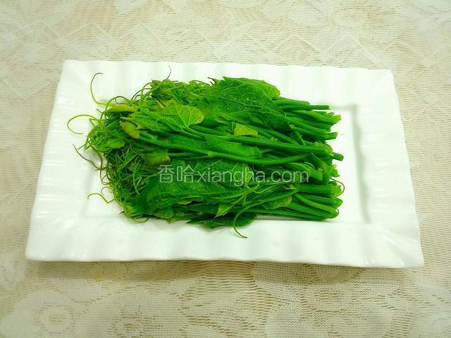 3.锅里添水,开大火,等水开了放入丝瓜尖炤一下,直到丝瓜尖变软捞出来。
