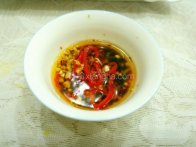 6.将锅烧热,锅热后放入油,油热后放入大蒜末,姜末,红椒爆一下锅后倒入小碗中。