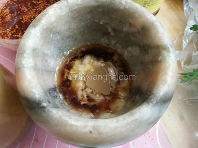 4.蒜瓣放盐敲碎成蒜泥