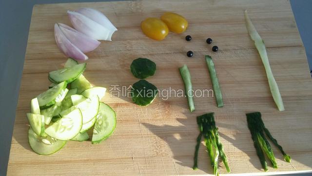 黄瓜片切薄点,否则摆出来立体感不强。