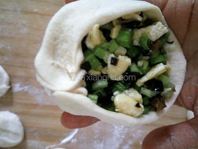 3.这个时间来准备馅:木耳提前泡发,芹菜鸡蛋大葱备好