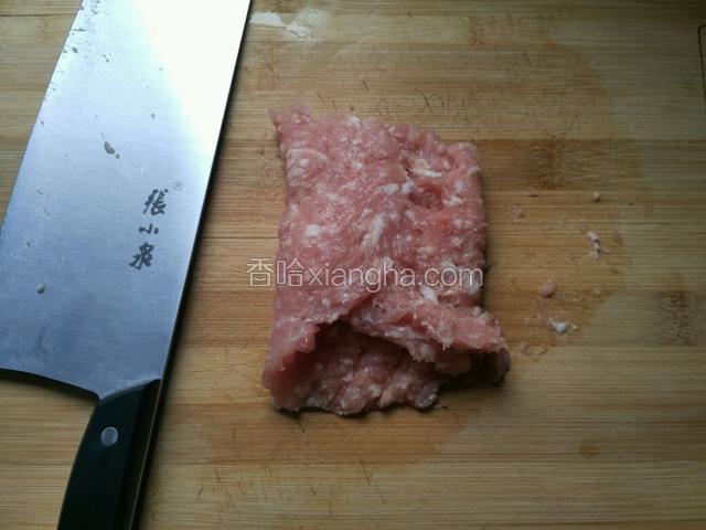 4.猪肉馅放入葱末姜末,盐,生鸡蛋,香油,少量的水,拌匀~
