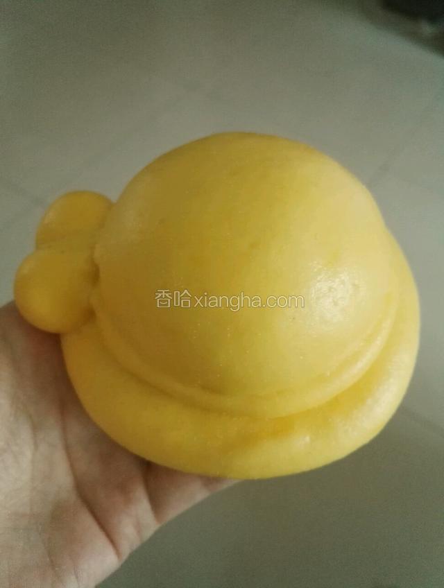 6.从大面团中分出两个大约50克的面挤子,和两个5克的小面团