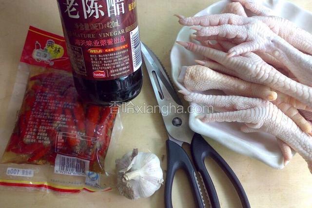 2.鸡脚剪去指甲入锅焯水;