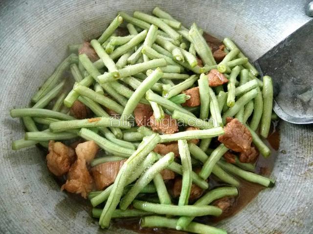 4.锅热炸肥肉,倒入瘦肉翻炒