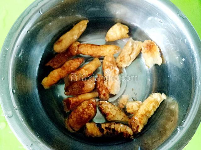 2.放微波炉加热半分钟至胀大,用清水稍浸泡后切成小块(如选用药店卖的大块天麻,虽加热变软后切片状)。
