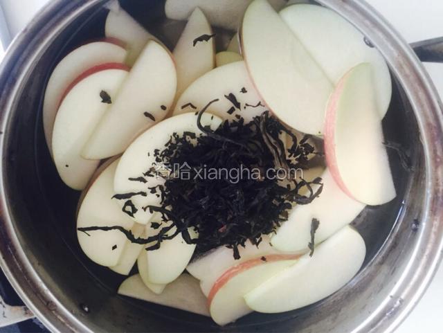 4.锅内加水,把苹果和茶叶放进去