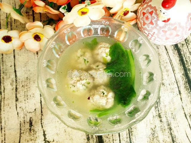 5.开锅一次后加入小白菜继续煮,加入适量盐