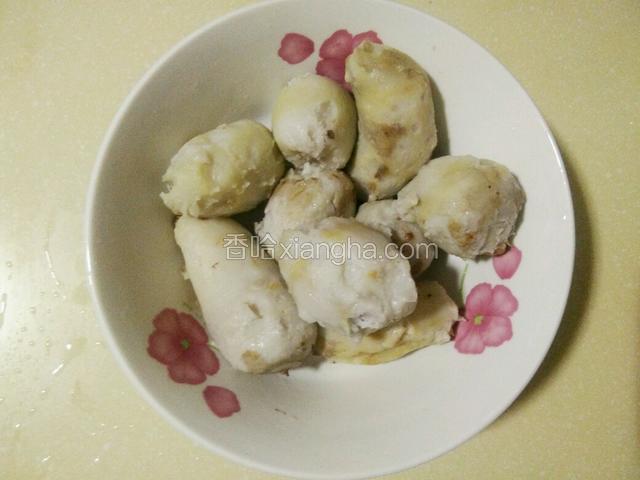 6.将芋艿放入大碗里去皮,看图这是去了皮的芋艿
