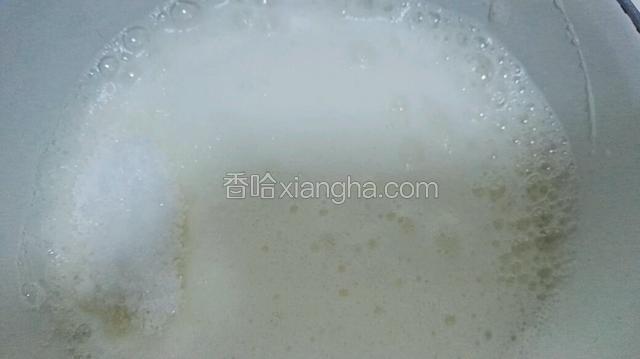 4.打匀的蛋黄加入16g白糖、茶籽油、牛奶,充分搅拌~(玉米油、花生油、橄榄油等等都可以)