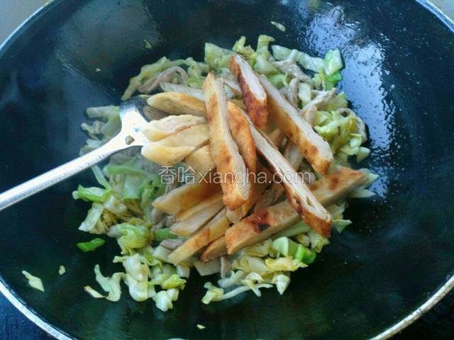 6.出香味放入肉丝煸炒